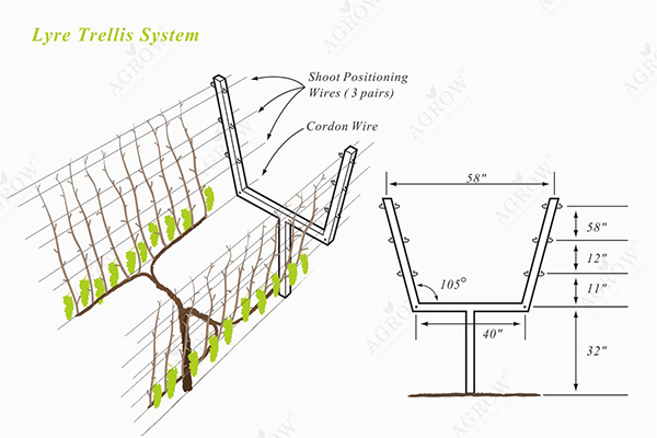 Системы из лировой шпалеры обычно используются на высокоурожайных виноградниках и широко используются во всем мире.