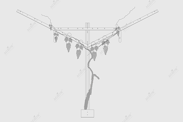 Система шпалер с открытым фронтом изначально предназначена для больших навесов столовых сортов винограда, а также может быть модифицирована для производства изюма DOV (Dried On the Vine).